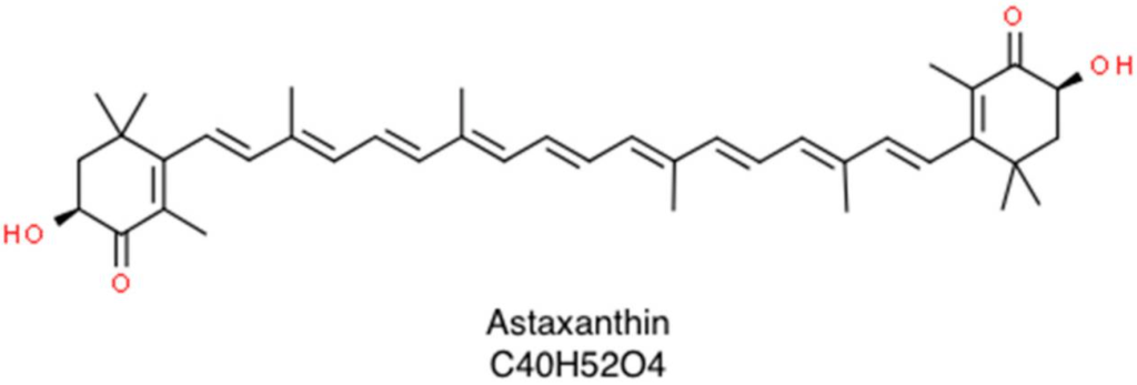 虾青素(3,3′-二羟基-β,β-胡萝卜素-4,4′-二酮;摩尔质量596.84克/摩尔)是一种天然存在的类胡萝卜素,其结构与功能特性使其成为预防多种人类疾病及维持健康状态的潜在生物活性化合物[1]。它隶属于叶黄素家族(类胡萝卜素的氧化衍生物),在海洋环境中尤为常见,呈红色色素。这也是鲑鱼、虾、龙虾和螯虾肉呈粉红至红色的原因[2]。虾青素由浮游植物和微藻(如雨生红球藻、绿球藻和叶黄素酵母)生物合成后,会在多种水生动物体内积累,这些动物成为这种重要营养素的主要食物来源。